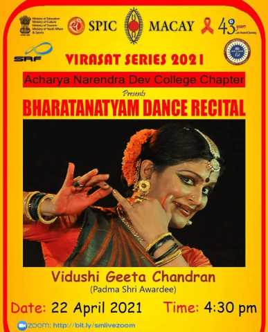 Acharya Narendra Dev College SPIC MACAY Chapter Present : Bharatnatyam Dance Recital by Vidushi Geeta Chandran (Padma Shri Awardee)
