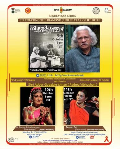 Screening of a malyalam masterwork NIZHALKKUTHU followed by an interactive session with eminent director Adoor Gopalakrishnan (Padma Vibhushan Awardee) under the cinema classics module.