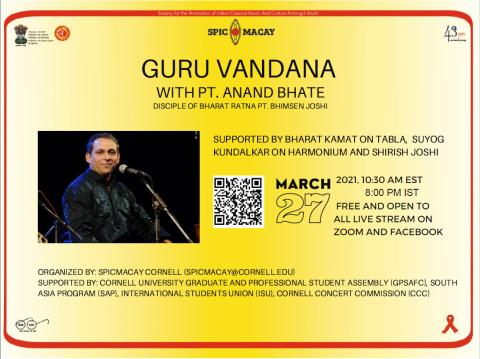 CORNELL University SPIC MACAY Chapter invites you to a virtual programme by esteemed Hindustani classical vocalist Pt. Anand Bhate.