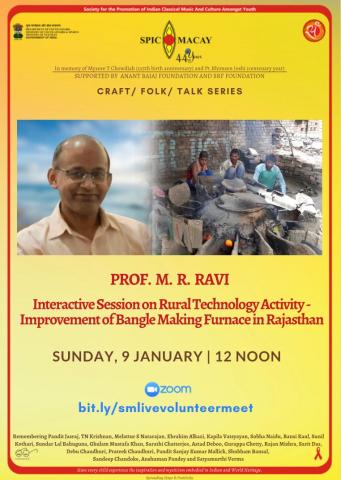 CRAFT/ FOLK/ TALK Series : Interaction session on Rural Technology Activity - Improvement of Bangle Making Furnace in Rajasthan By Prof. M. R. Ravi