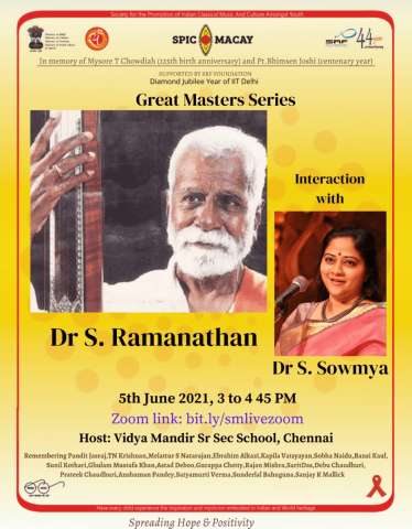 SPIC MACAY Great Master Series : Dr. S. Ramanathan (live interaction Dr. S. Sowmya)