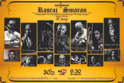 Image Online memorial concert for the Sangeet Martand Pt. Jasraj on 30th August 2020 from 6.30 pm IST onwards on the official YouTube channel of SPIC MACAY. Chapter Delhi (NCR)