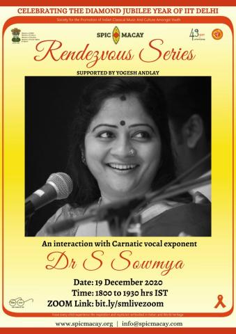 Image An interaction with Carnatic Vocal Exponent - Dr. S Sowmya Date : 19th December 2020 Day : Saturday Time : 6 - 7:30 pm Chapter Delhi (NCR)