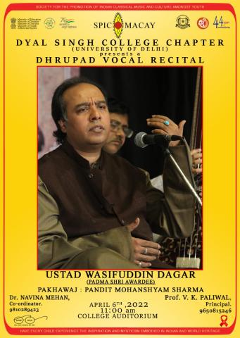 SPIC MACAY Dyal Singh College Chapter Presents : Dhrupad Vocal Recital by Ustad Wasifuddin Dagar