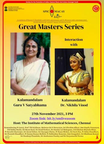 SPIC MACAY Great Master Series : Featuring Kalamandalam Guru V Satyabhama Followed by Interaction Kalamandalam Dr. Nikhila Vinod