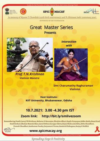 SPIC MACAY Great Master Series : Prof. T. N. Krishnan (live interection with Smt. Charumathy Raghuraman (violinist))