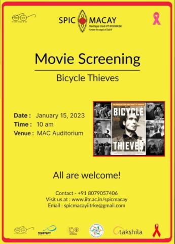 SPIC MACAY Heritage Club of the IIT Roorkee Presents : Movie Screening of "Bicycle Thieves"