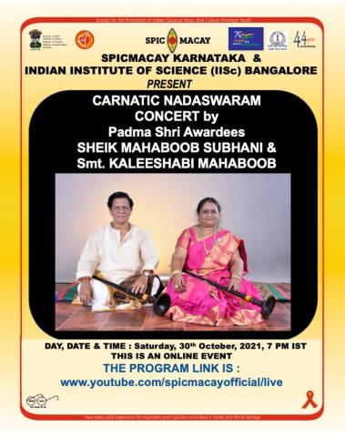 SPIC MACAY Karnataka & IISc Bangalore presents : Carnatic Nadaswaram Concert by Sheik Mahaboob Subhani & Smt. Kaleeshabi Mahaboob