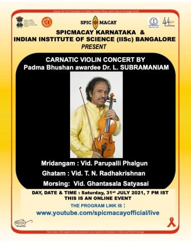 SPIC MACAY Karnataka & IISc Banglore Presents : Carnatic Vocal Concert by Dr. L. Subramaniam