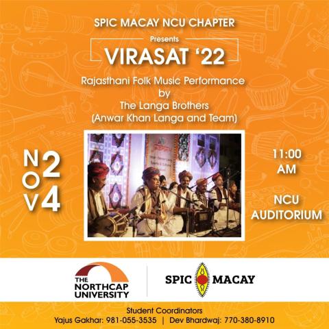 SPIC MACAY NCU Chapter Presents: VIRASAT'22