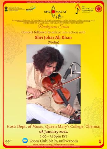 SPIC MACAY Rendezvous Series : VIOLIN Concert followed by online interaction With Shri Johar Ali Khan