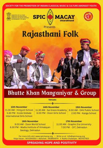 SPIC MACAY Uttarakhand Chapter Presents : Rajasthani Folk Feat. Bhutte Khan Manganiyar & Group