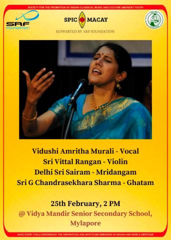 SPIC MACAY Vidya Mandir Senior Secondary School Mylapore Chapter Presents : Musical Concert