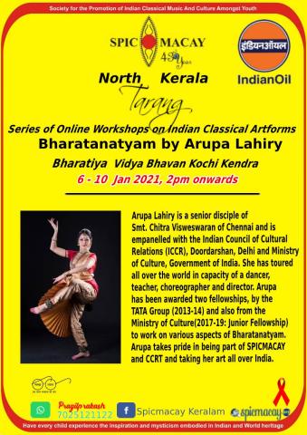 Image Series of Online Workshops on Indian Classical Artforms Bharatanatyam by Arupa Lahiry Bharatiya Vidya Bhavan Kochi Kendra 6-10 Jan 2021, 2pm onwards Chapter Kerala