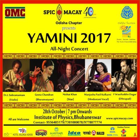 SPIC MACAY Odisha invites you all to attend Yamini - All night concert by the doyens of Indian classical music in Institute of Physics on 28th of October at 7:00pm