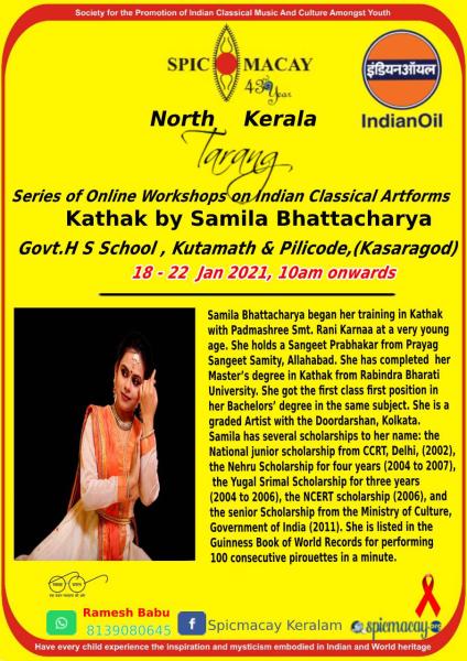Ms Santosh Nair will conduct on line Bharatanatyam Work Shop for Higher Secondary school as per the above details