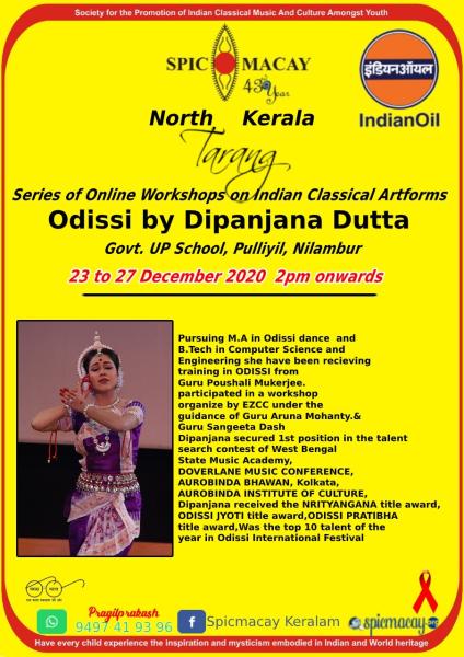Odissi comes to Nilambur ( Kerala) SM IOC partnership Workshop five days for 2 hours a day during school holidays . Merry Christmas