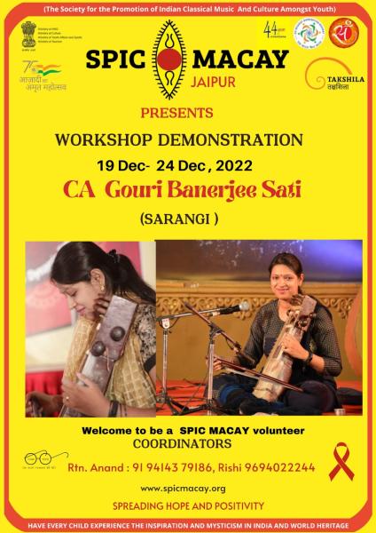 SPIC MACAY Jaipur Chapter Presents : Workshop Demonstration on "SARANGI" by CA Gouri Banerjee Sati