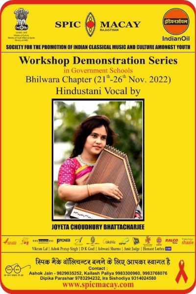 SPIC MACAY Bhilwara Chapter Presents : Workshop Demonstration on Hindustani Vocal by Joyeta Choudhury Bhattacharjee