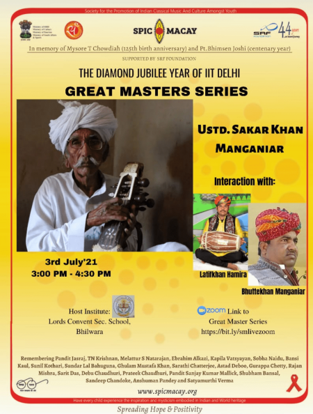 SPIC MACAY Great Master Series : Ustad Sakar khan Manganiar (live interection with Latifkhan Hamira & Bhuttekhan Manganiar)