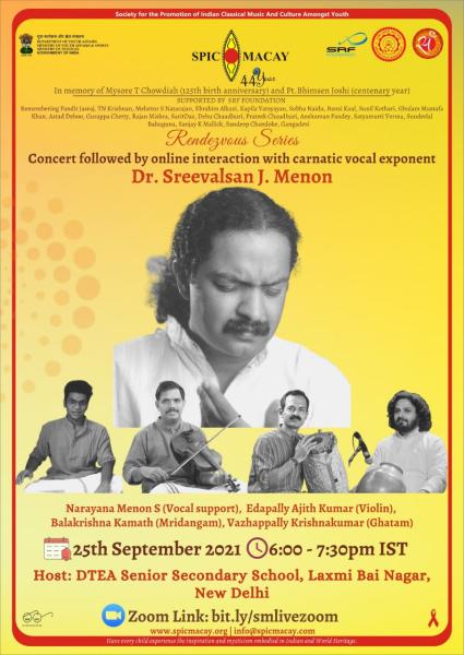 SPIC MACAY Rendezvous Series : Dr. Sreevalsan J. Menon (Carnatic Vocal Exponent)