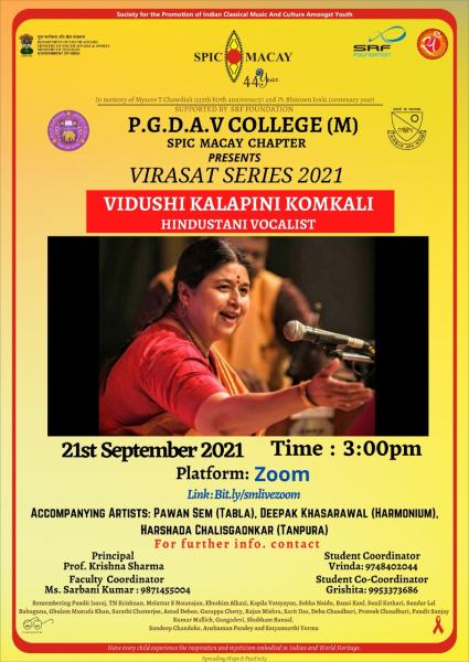 PGDAV College SPIC MACAY Chapter Presents : Vidushi Kalapini Komkali