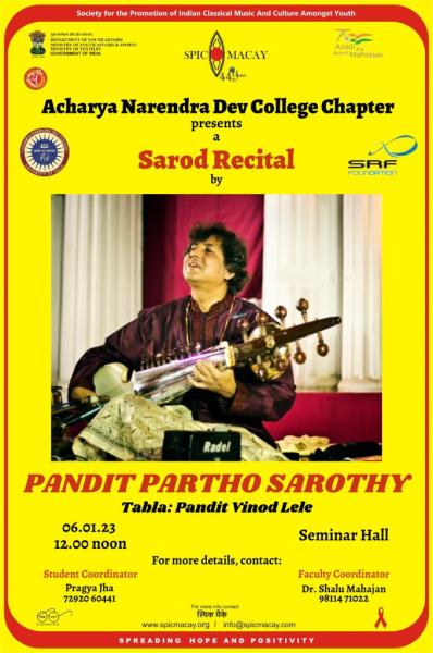 Acharya Narendra Dev College Chapter Presents : Sarod Recital by Pandit Partho Sarothy