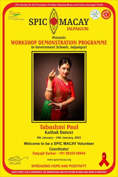 SPIC MACAY Jalpaiguri Chapter Presents : Workshop Demonstration on Kathak by Tabashmi Paul