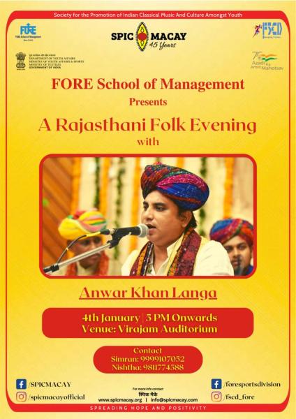 FORE School of Management Presents : A Rajasthani Folk Evening with Anwar Khan Langa