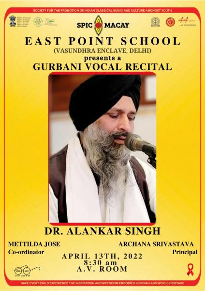 SPIC MACAY East Point School East, Delhi Chapter Presents : Gurubani Vocal Recital by Dr. Alankar Singh