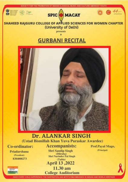 SPIC MACAY Shaheed Rajguru College of Applied Sciences for Women Chapter Presents : Gurubani Vocal Recital by Dr. Alankar Singh