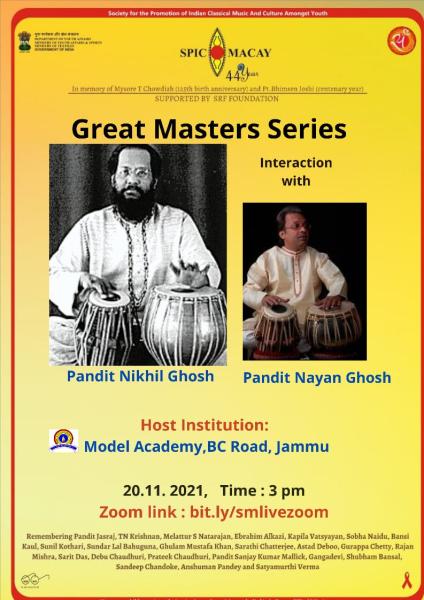 SPIC MACAY Great Master Series : Featuring Pandit Nikhil Ghosh Followed by Interaction with Pandit Nayan Ghosh