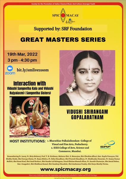 SPIC MACAY Great Master Series : Featuring Vidushi Srirangam Gopalratnam