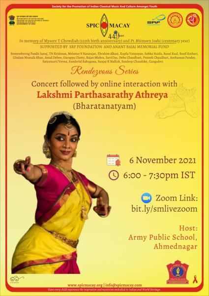 SPIC MACAY Rendezvous Series : BHARATANATYAM Featuring Vidushi Lakshmi Parthasarathy Athreya