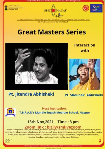 SPIC MACAY Great Master Series : Pt. Jitendra Abhisheki Followed by live interaction with Pt. Shounak Abhisheki
