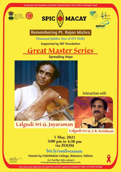 SPIC MACAY Great Master Series : Prof. T. N. Krishnan (live interection with Smt. Charumathy Raghuraman (violinist))